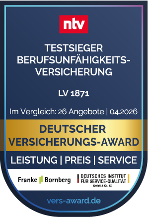 Ein befreundeter Versicherungsmakler hat die Berufsunfähigkeitsversicherung der LV 1871 gelobt. Gut finde ich: Kompetente, freundliche Mitarbeiter am Service-Telefon – ohne lange Wartezeit. Ich habe auch einen Online-Zugang zu meinen Vertragsdaten.